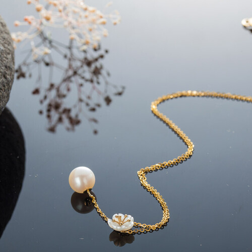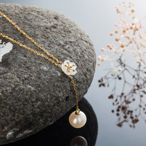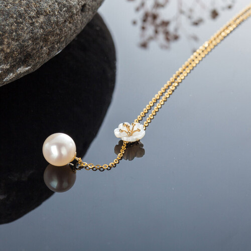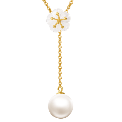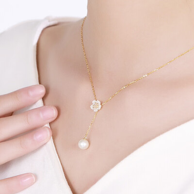 采用珍珠坠饰设计,散发着典雅韵味,光泽通透,佩戴上更显气质,彰显品位与格调。K金材质打造链条,色泽靓丽,高雅惹眼。