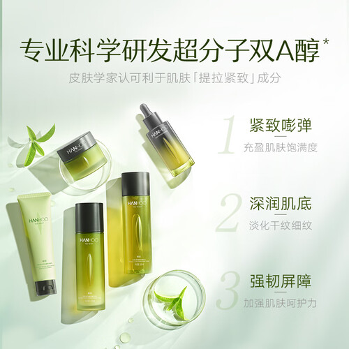 蕴含多重核心成分,双A醇淡化细纹,撑起肌肤弹力,肌肽缓解自由基损伤,改善氧化糖化暗沉,玻色因紧致肌肤,呵护熟龄肌。
