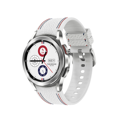 采用三色缝合表带的设计,成为白色中的亮点,不显单调。拥有经典的圆形表盘,适合不同的场合,使用广泛。