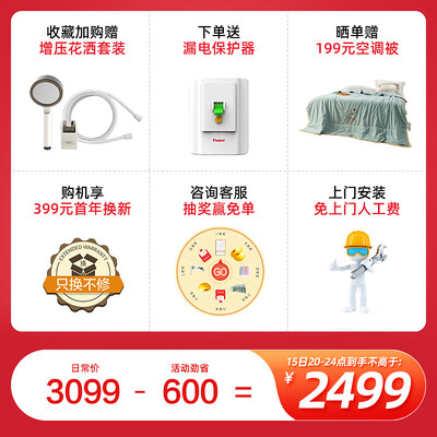 双驱动加热,核心多模技术,加热更加快速,热水无需久等,节能时间。多倍增容,水量充沛,支持多路供水,满足全家用水需求。