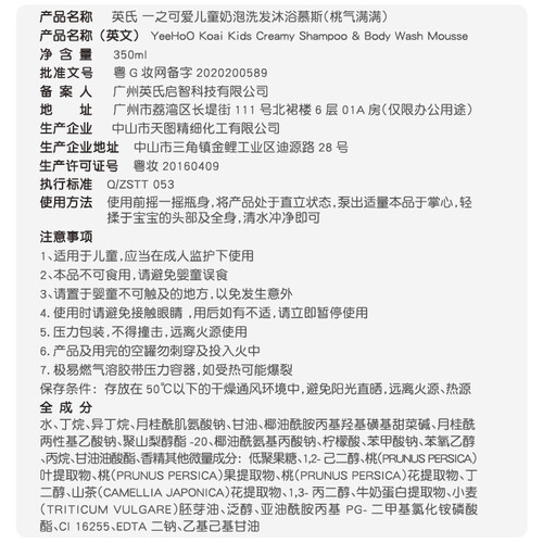 英氏桃子味宝宝沐浴露