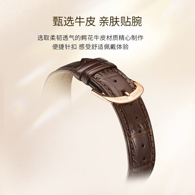 简约太阳砂底纹表盘,配合搪瓷油表面,不同角度散发出夺目光泽。轻薄表壳,佩戴舒适。针扣表扣,舒适不紧绷。