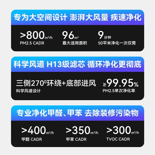 拥有澎湃大风量,像办公室教室等大空间净化游刃有余。数重循环净化,彻底击败有害空气污染物,给家人提供纯净的呼吸环境。