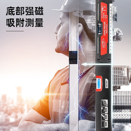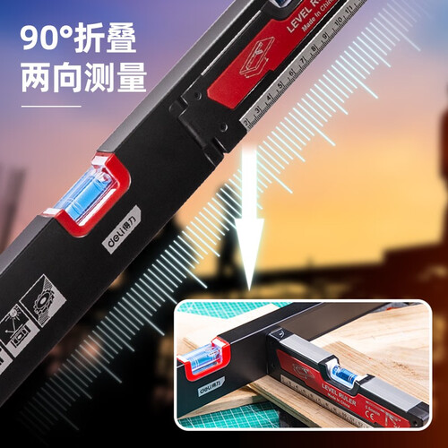 采用90度折叠设计,兼具水平与垂直两向测量,提高使用便捷性。特选优质铝材,表面经过喷漆处理,久用也不易生锈。