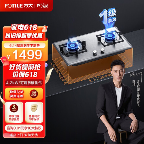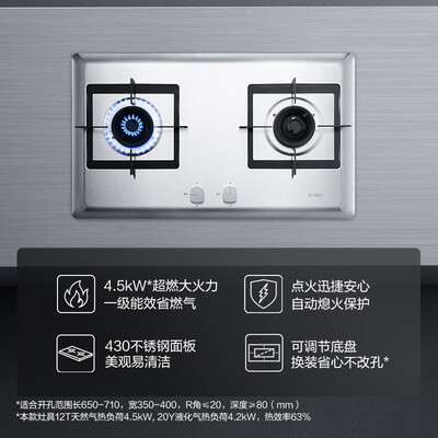 采用可调节底盘,让灶具更容易适应台面开孔,轻松换新不烦心。又特设一级能效标准,热效率更高,大火力同时更节省燃气。