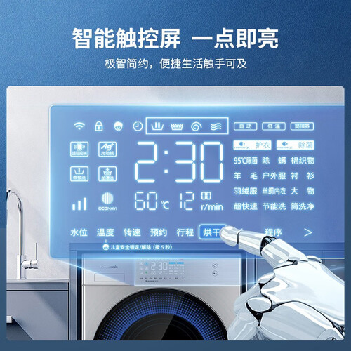 可进行无线智控的滚筒式洗衣机,配合专业节能导航,使用起来能耗低又便捷,自动立体洗与冷凝式智能烘干组合,带来安全护理。