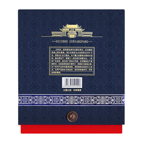 赤水河之水加上熟麦和高粱,古法工艺酿造,再经过十年的窖藏,赋予了细腻醇厚的口感。酒体绵延顺滑,酒花丰富色泽稠密。