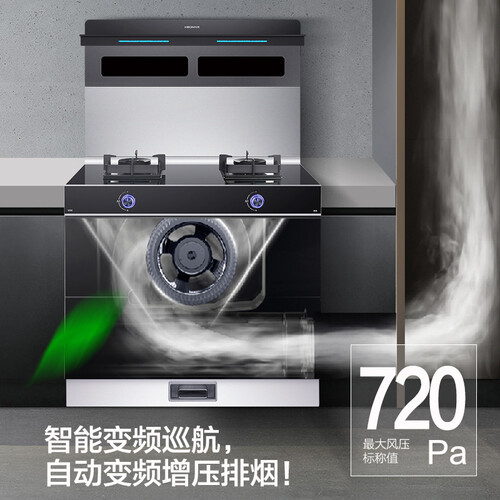 采用低空近吸技术,秒速排出油烟,防止油烟过脸。支持烟灶联动功能,可以自动排烟,让双手得到解放。