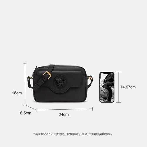 百搭的相机包,使用意大利皮革材质制成,突出现代风格。添加美杜莎造型点缀,更显立体,时尚个性。