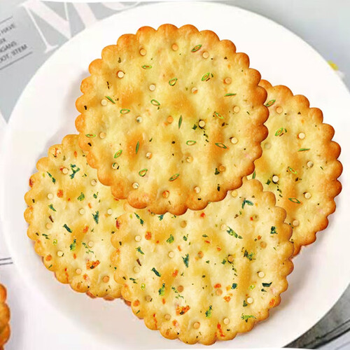 添加新鲜香葱,葱香浓郁,薄脆爽口,吃的更痛快。个头小巧,一口一个,可追剧观影时食用,好吃不腻。