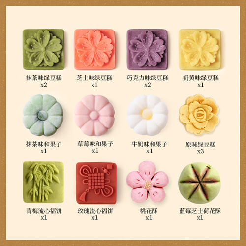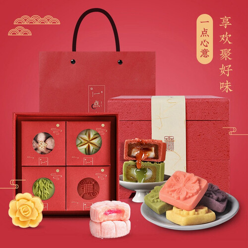 具有12种不同糕点,让你一次尝个遍,尽情享受舌尖上的美味。搭配精致盒装,外观时尚又大气,春节送礼优选。