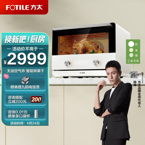 零油空气炸,高温脱脂,轻松炸出丰富美味。搭载1200W大功率蒸汽发生器,蒸汽快速进入食材内部,带来鲜嫩口感。