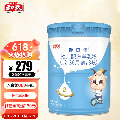 纯羊乳清蛋白,保留优良口感,让宝宝爱上它。添加益生元组合,为宝宝健康成长提供充足营养和保护。