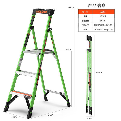 精选玻璃纤维绝缘材料打造而成,具有优异的绝缘性、耐热性、抗腐蚀性。采用加厚梯身设计,有效提升梯子的承重力。
