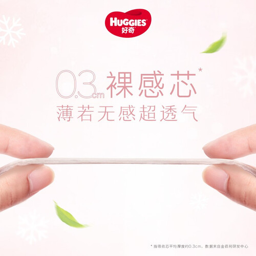 选羽柔纤维面料,更亲肤,减少尿液对肌肤的接触,让小屁屁更舒适。0.3cm裸感芯体,快速锁住水分,无需半夜起床更换。
