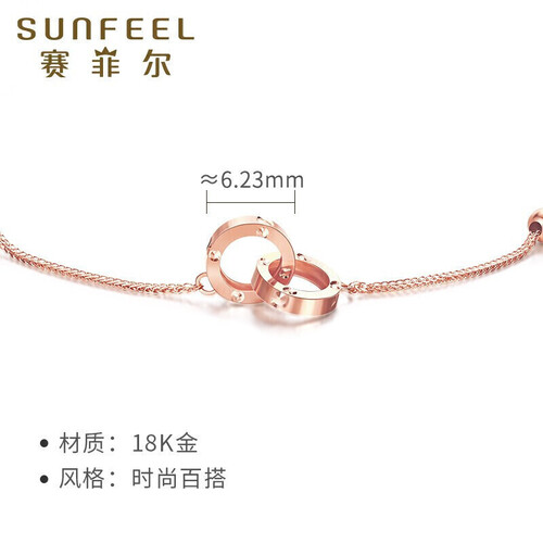 赛菲尔 玫瑰金双环光珠手链