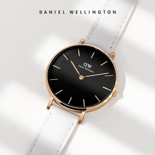 金色边框华丽出彩,可以展现出轻奢大气的格调。牛皮革材质表带具有清晰的纹理,贴肤舒适。小巧表冠,美观耐用。