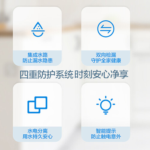 具有四重安全防护设计,在使用时充分保障安全,畅享安心净水。小巧的外形设计,不占空间,适配多数厨房环境。
