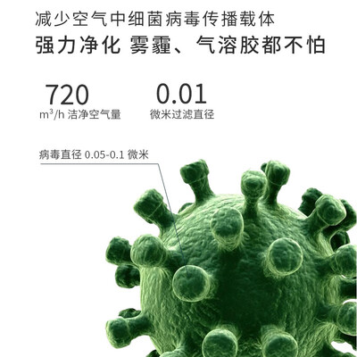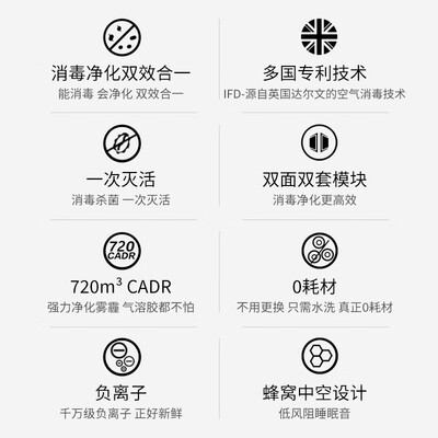 双效合一的设计,能够净化空气,杀灭病毒和粉尘等,满足家庭使用。耗材无需更换,只需水洗即可,真正零耗材。