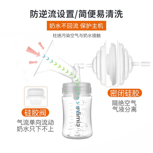 贴心的双边吸乳设计,减少吸乳时间,减轻妈妈的不适感。防逆流设计,避免空气与奶水接触,拒绝感染更卫生。