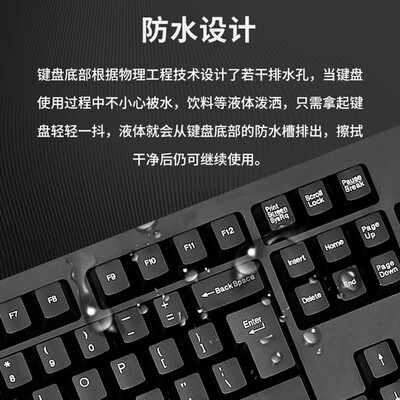 全尺寸贴心的设计很符合人体工学,久用手指也不会累。键盘底部根据物理工程技术采用防水设计,即便洒上水也不用担心。