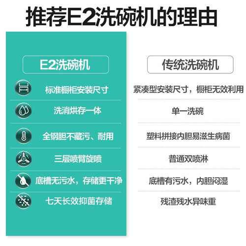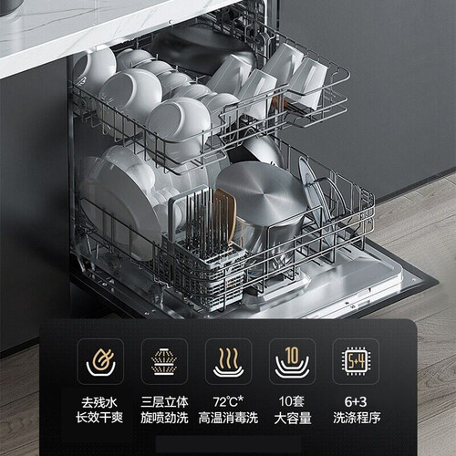 三层立体喷淋设计,搭配72℃高温消毒,洗得更干净。采用干态技术,加促餐具快速干燥,没有水渍残留。