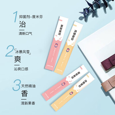 加入瑞士冰暴风雪专利,伴随着天然精油打造的清新果香,造就沁爽口感。含有度米芬成分,有效抑制口臭。