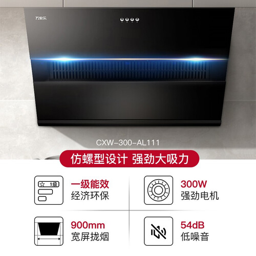 采用加长宽屏陇烟设计,能够进一步扩大陇烟范围,防止油烟扩散。300W电机,动能强劲性能稳定,延长使用寿命。
