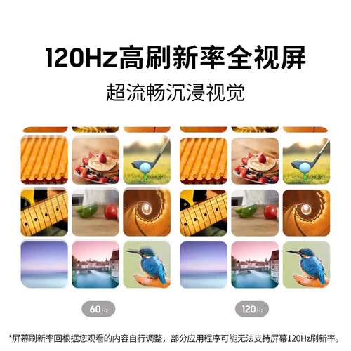 手机每秒120hz的刷新速度,页面切换更加流畅,显示更加清晰。6.6英寸的全视屏,释放出更多缤纷的色彩。