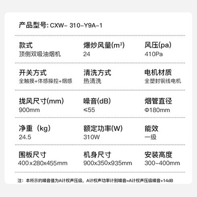 410Pa超大静压,排烟畅通无阻,不会再闻到邻居菜味。搭载煤气漏气检测系统,煤气一旦浓度过高,就会自动换气。