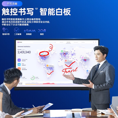 智能投屏模式打开使用的想象力,一次分四屏实现多种功能。批改功能可以直接用比进行书写,适合公司会议使用。