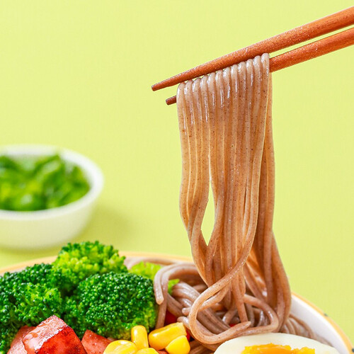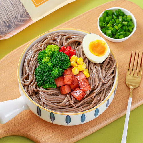 选用粗粮荞麦面,不仅口感更加爽滑,而且好吃而不易长肉肉。制作过程不添加白面粉,脂肪含量比较少,吃起来不失嚼劲感。
