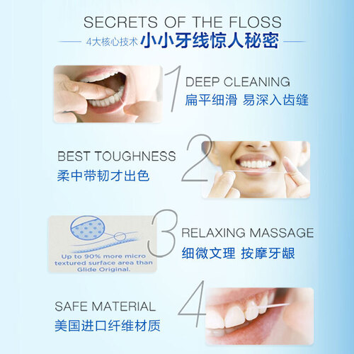 细薄耐磨的牙线,柔韧易深入牙缝清洁,轻松带走食物残渣,告别塞牙尴尬。还能清新口气,助职场精英面对挑战时依然微笑面对。