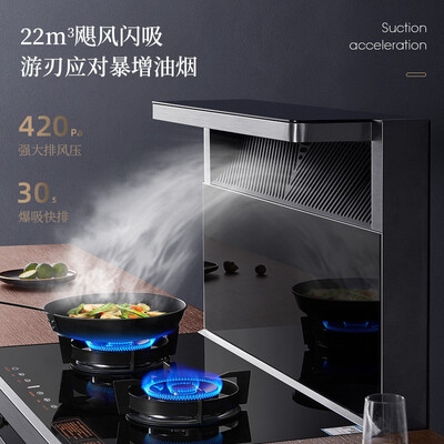高配置,吸力大,烟灶保洁三合一,省空间也省力;飓风闪吸设计,面对暴增的油烟也不怕,快速消散油烟,爆洗快排更便捷。