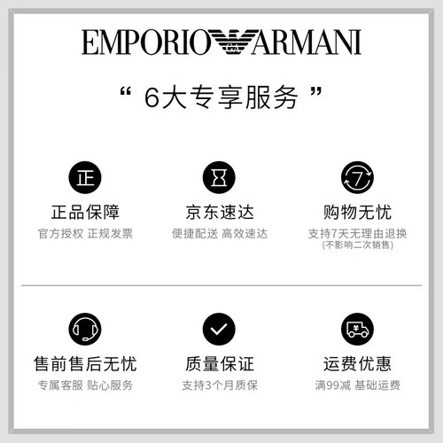 别具一格的黑色方形轮廓,搭配潮流字母印花,打造高街范。镌刻阿玛尼logo,时尚百搭,凸显品牌质感。