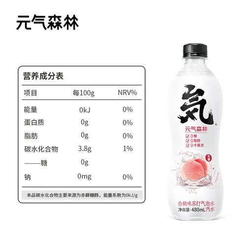 元气森林 白桃味苏打气泡水饮料