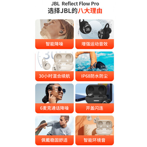 通过哈曼声学精心调校,增强型运动声效,让你跟随节奏尽情释放激情。反光标徽设计,夜跑骑行安全性更高。