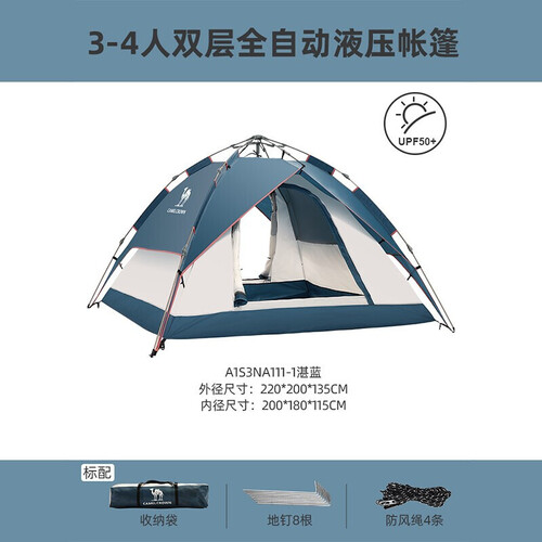 帐篷内置挂钩设计,可用来悬挂露营灯等,解放双手,让照明更加方便;采用双拉链设计,拉合顺畅,让进出更加方便。