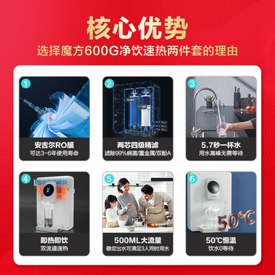 便捷自主更换滤芯,无需借助其他工具,简单便捷。采用长效反渗透技术,净水效果不衰减,饮水安全无忧。