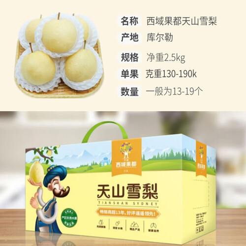 源自新疆库尔勒核心产区,天山雪水滋养,自然成熟,雪梨口感细腻,糖度高,汁水多。无论是直接食用还是榨汁都适合。