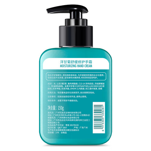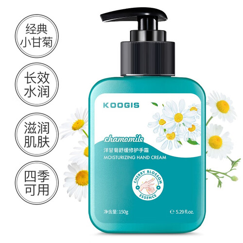 采用安心的配方,温和不会粘手。丰富的洋甘菊成分,改善手部的粗糙感,滋润不会油腻,让双手更加饱满。