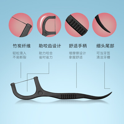 原料选用高分子竹炭纤维,更易进入牙缝,剔牙使用不易断裂、不扩张牙缝。尾部经过圆润处理,剔牙使用不伤害牙龈。