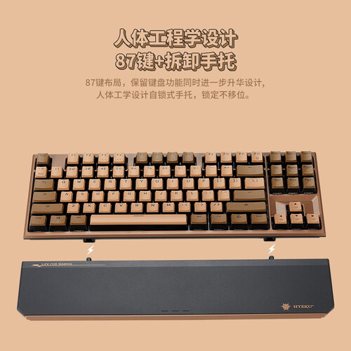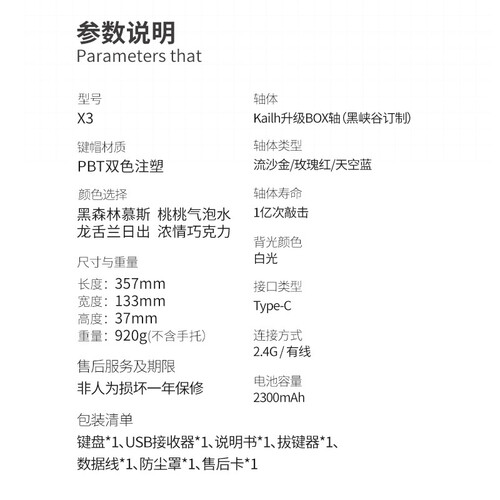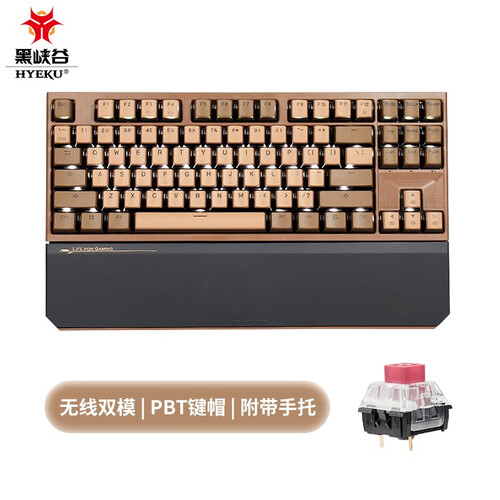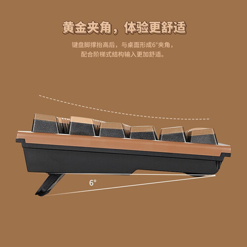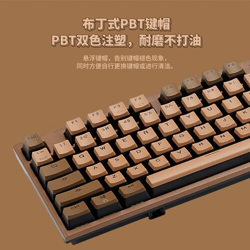采用PBT材质键帽,具有耐打油、耐磨的优点。底部设有三向出线口,可以自定义出线口。