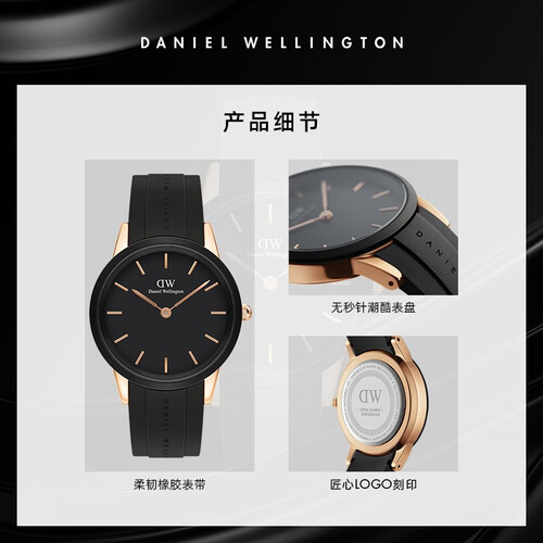 酷黑表盘,玫瑰金色的刻度,简约而不失现代感,让腕间更加优雅和灵动。采用全新的材质的表带,吸湿排汗,佩戴舒适。