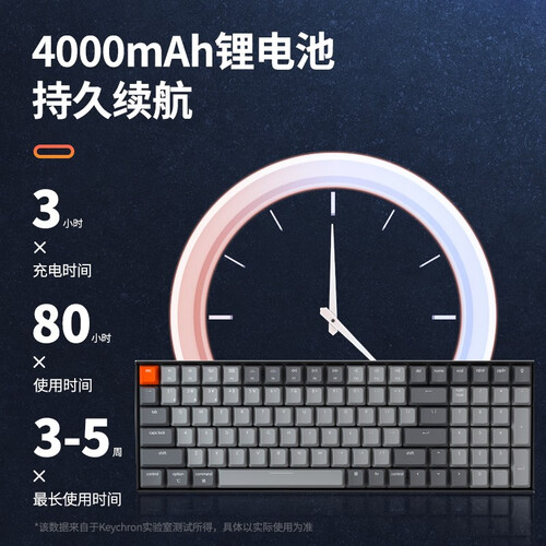 精简设计的双模键盘,符合人体工学操作轻松顺畅,安装锂电池高效续航方便出行携带,支持三台设备共联,工作无干扰。