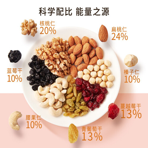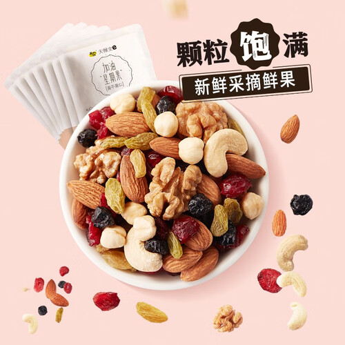 将四种坚果和三种果干科学配比,选用优质个大的原果,饱满酥脆,营养美味。采用独立小包装,小巧便携,随时都可享用美味。