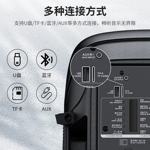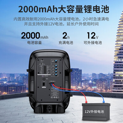 搭载8英寸中低音大喇叭,声音优质不失真,即使是户外也能听得清楚,支持接入无线话筒,响应迅速,适合大型会议时使用。