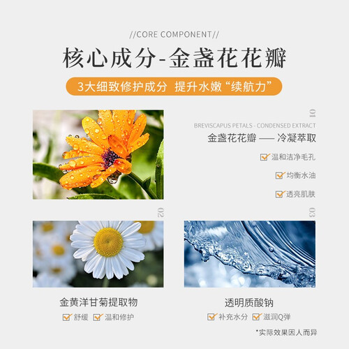 含有金黄洋甘菊提取物和透明质酸钠,可以舒缓肌肤不适,同时持续深入滋润肌肤。质地水润,揉搓片刻就能吸收。