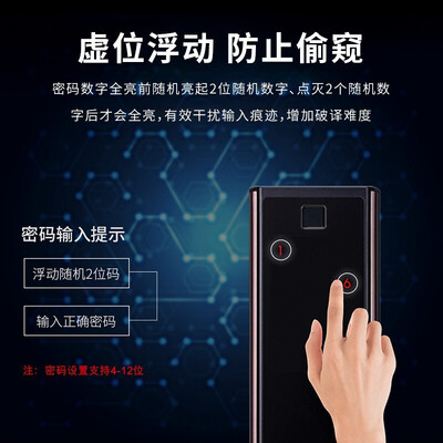 内置半导体指纹识别系统,可以准确地分析指纹,老人小孩也可轻松使用。支持蓝牙连接,通过手机APP进行操作,使生活更加便捷。