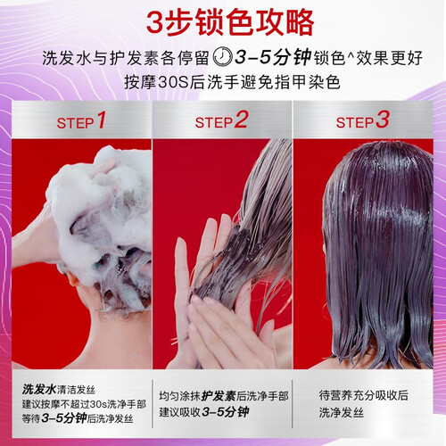 采用发色维稳氨基酸成分,能够持久锁色,令发丝持久保持亮丽色彩。泡沫绵密,深层净澈发丝,根根分明一梳到底。